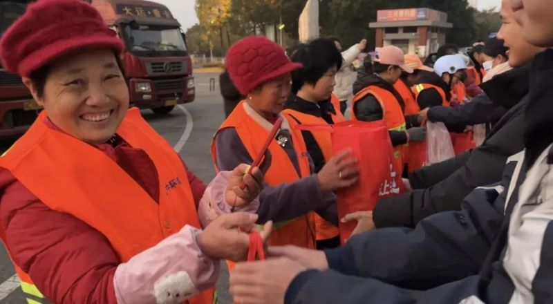 在晨曦薄霧中,孩子們早早排好隊,手上提著由富興飛鴿藥業、長郡湘潭高新實驗學校、孩子們精心準備的暖心物資和愛心早餐,並向湖南湘潭320名環衛工人送上瞭暖心物資和愛心早餐。除瞭送上物資,孩子們和志願者還主動幫助環衛工人進行清掃工作,環衛工人服務區域打掃得煥然一新。